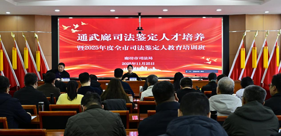 为深入学习贯彻党的二十届四中全会精神,强化司法鉴定行业合作交流,推动通武廊教育资源共享与优势互补。11月25日,廊坊市司法局联合通州区司法局、武清区司法局共同举办了通武廊司法鉴定人才培养暨2025年全市司法鉴定人教育培训班。通武廊三地司法鉴定管理干部、司法鉴定人及鉴定助理110余人参加培训。