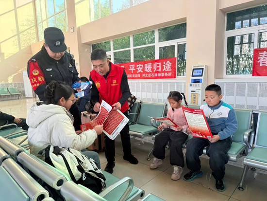2026年春运大幕启,法治护航行。为切实保障返乡旅客合法权益,筑牢春运安全法治防线,近日,广阳区司法局携手廊坊站派出所、河北岳石律师事务所在廊坊广阳站铁路候车厅开展“普法护春运平安暖归途”主题普法宣传活动,将法律知识与便民服务送到群众返乡路上,让法治暖意伴随旅途全程。活动现场,广阳区司法局工作人员、铁路公安民警、河北岳石律师事务所的律师志愿者们走到候车旅客身边,针对春运期间高频法律需求,重点围绕民法典、反诈、治安管理、道路交通安全等相关法规知识,聚焦购票退票纠纷、“黑车”营运风险、劳资欠薪维权、电信网络诈骗防范等热点问题,通过典型案例拆解、通俗语言释法、维权路径指引等方式,为旅客提供“一对一”专业咨询服务。面对旅客们的疑问,律师志愿者们耐心倾听、细致解答,累计回应咨询50余人次,让群众在候车间隙就能获得实用法律指导。同时,以“普法+公益”的形式,向旅客发放法律法规宣传页和“宝贝回家”官网登记的失踪儿童信息的宣传页。此次活动通过“接地气、暖人心”的普法形式,有效提升了广大旅客的法律意识和自我保护能力,为春运期间的出行安全筑牢了法治屏障。
