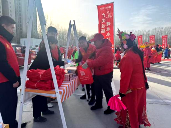 律所律师深入广阳区庙会开展流动普法宣传,向现场群众发放反诈宣传资料、禁燃烟花爆竹提示单,宣讲《中华人民共和国治安管理处罚法》中关于禁燃禁放、节日安全等相关规定,普及反诈、消防安全、治安管理等法律知识,引导群众自觉遵守法律法规,平安文明过节。